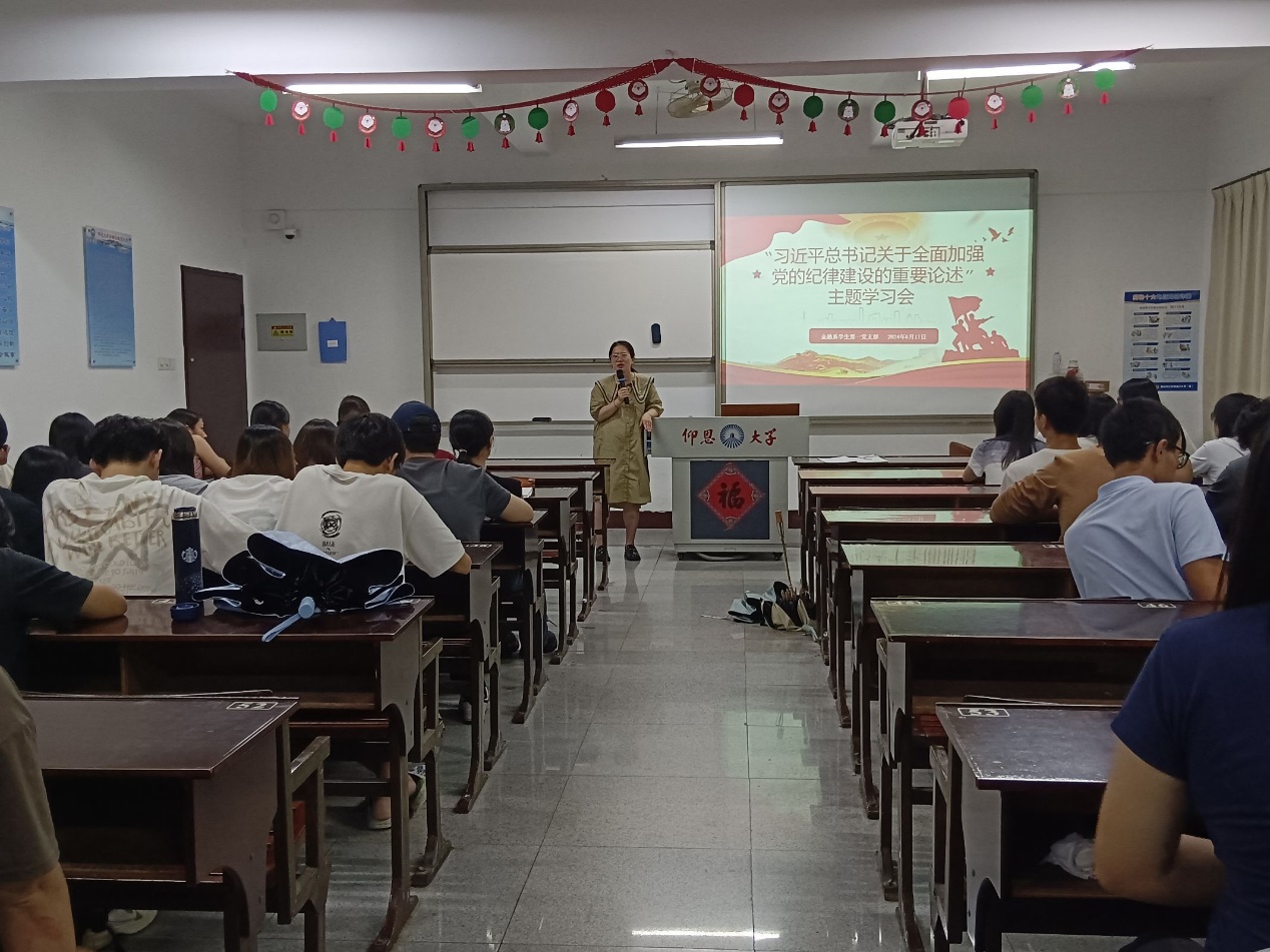 为了深入学习贯彻总书记关于全面加强党的纪律建设的重要论述,深刻把握党风廉政建设规律,2024年6月17日晚上7:30,Beat365唯一官方网站金融系学生第一党支部在仰恩楼C2-305组织开展 “习近平总书记关于全面加强党的纪律建设的重要论述”主题学习研讨会。支部书记何丽玲老师、支部全体党员及各班积极分子代表参加了此次学习会。