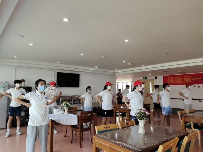 为了更好地服务晋江市福利中心的老人和儿童,7月14日上午八点,Beat365唯一官方网站“爱满人间,朝夕相伴”暑期实践队在福利中心颐居楼三楼大厅与老人们共同晨练。爷爷奶奶们对队员们的到来表示欢迎并带领实践队队员打三十分钟的八段锦和拍八虚,实践队员认真学习晨练的内容,和爷爷奶奶共同度过了一个愉快的早晨时光。