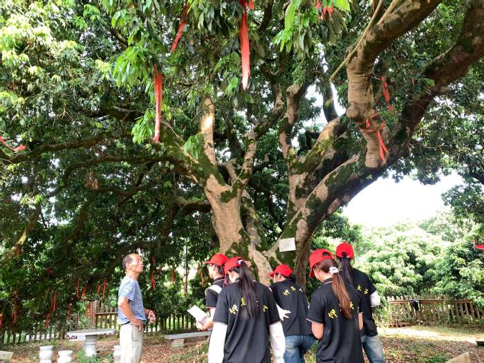 在百年荔枝树下,茂霞村书记为实践队员解读了这棵五百年历史的荔枝树所蕴含的历史信息,同时对其科学管理和保护措施进行了深入探讨。紧接着,实践队员移步至茂霞村的荔枝博物馆,通过馆内丰富的图文展示和互动体验,全面了解了荔枝的起源、品种演化以及在当地经济社会发展中的重要地位。在活动最后,实践队员们参观了荔枝园,实地观察了果农们采摘荔枝的过程,并品尝了当地荔枝。