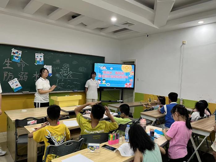 在实践队员的讲解下,小朋友们学习了有关“预防溺水”的安全知识,了解到“预防溺水”的自救和救护的方法。此外,实践队员们还通过知识竞答、黑板报、绘画等多种形式,向小朋友普及防溺水知识,并要求小朋友们牢记防溺水“三不”和“一会”,即不私自下水游泳,不擅自与同学结伴游泳,不在无家长或老师带领的情况下游泳,学会基本的自救和互救技能。