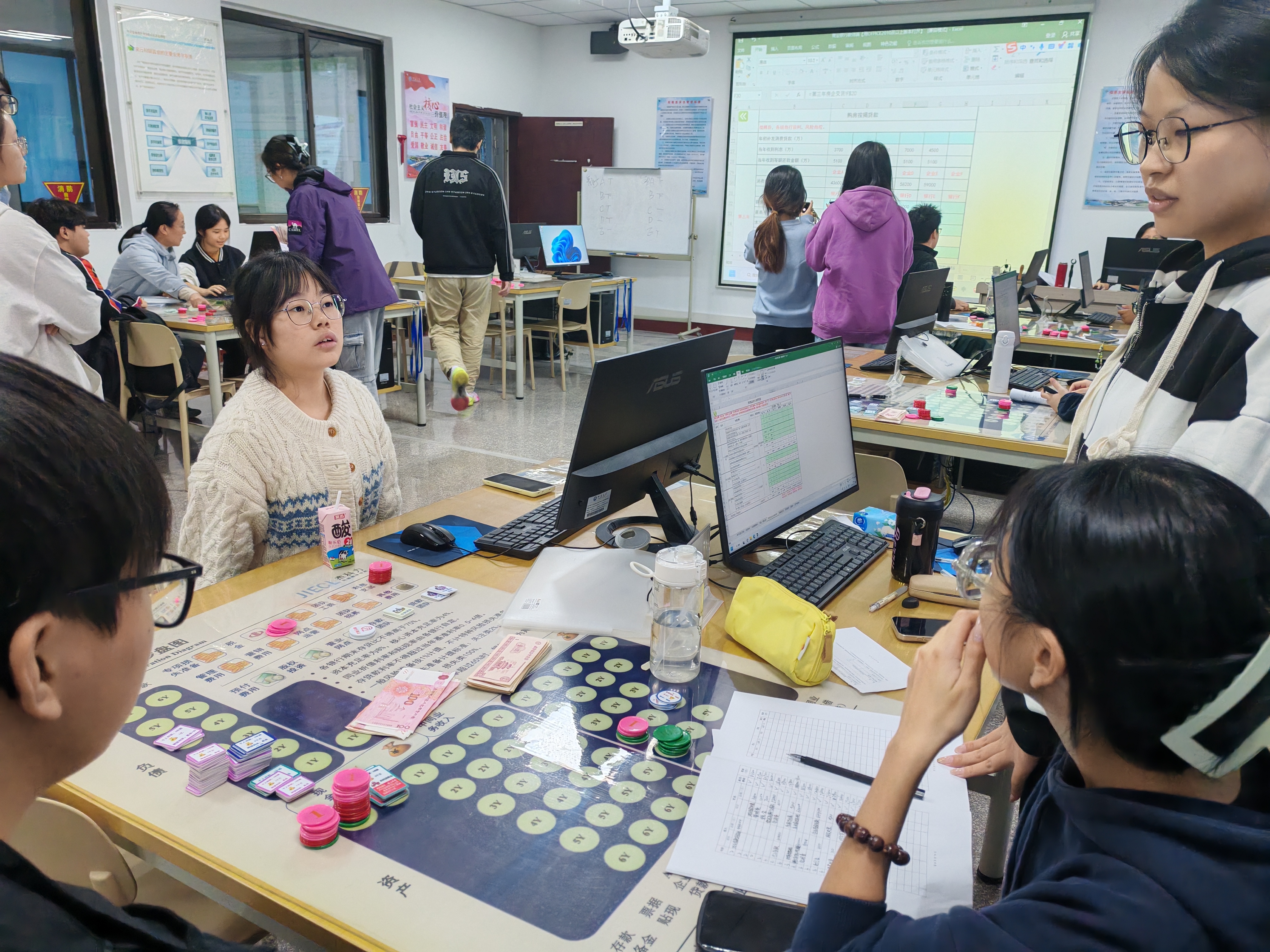 本次观摩的课程为沙盘实践演示课,主要教学内容以房地产企业与银行间开展贷款经营为例,学生根据课程教学内容需要,分成不同小组,模拟企业、银行、银监会等不同角色,通过财务报表了解企业财务状况、经营成果和现金流情况,掌握偿债能力比率、运营效率比率和盈利能力比率等财务指标以及财务分析方法进行年度财务报表分析,并在课程教学过程中融入思政教育,引导学生要开展诚信守法、严谨细心、持续学习和坚守原则初心的经营理念。