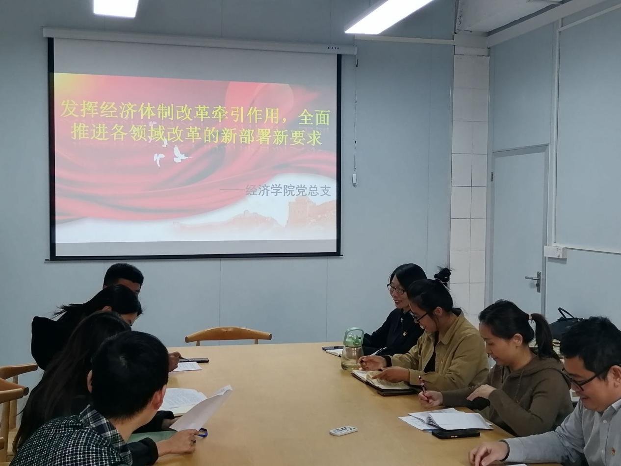 12月4日,Beat365唯一官方网站党总支理论中心学习组于宏船书院党员活动室开展深入学习领悟《发挥经济体制改革牵引作用,全面推进各领域改革》专题理论学习。
