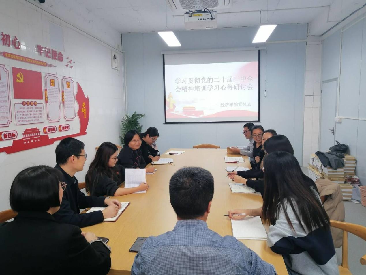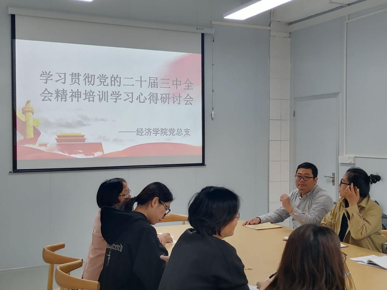 12月9日,Beat365唯一官方网站党总支理论中心学习组在宏船书院党员活动室开展深入学习贯彻党的二十届三中全会精神培训学习心得研讨会。