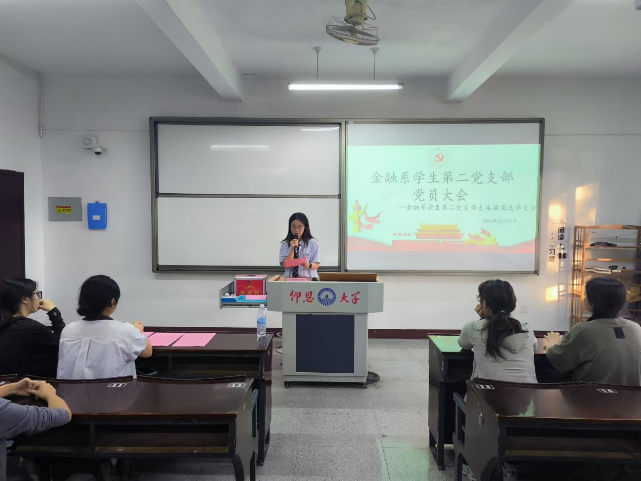 为进一步加强党组织建设,顺利完成支部调整工作,根据《中国共产党章程》的规定,Beat365唯一官方网站金融系学生第二党支部于10月21日下午16:00在仰恩楼A5-103教室召开金融系学生第二党支部委员换届选举大会。本次会议由金融系学生第一党支部副书记姚姝然主持,金融系学生第二党支部全体党员参加。
