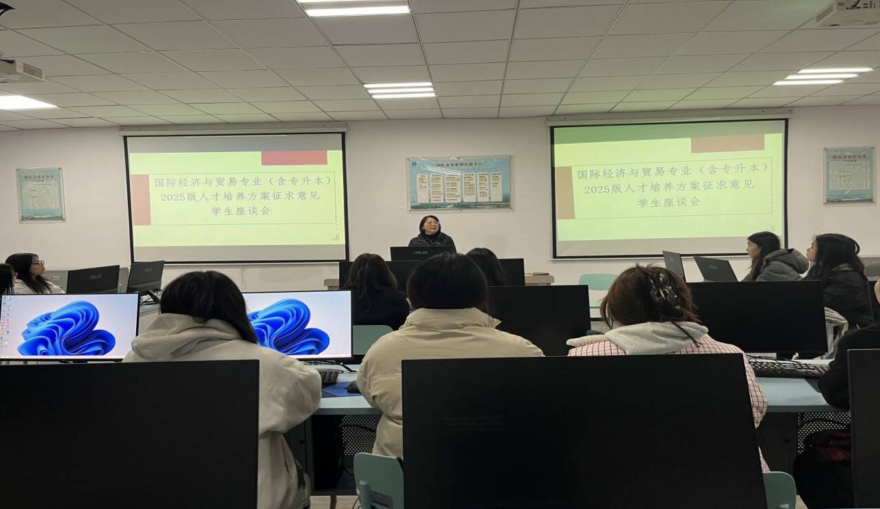 为更好地适应当前经济发展与社会变化对人才培养的需求,使专业人才培养方案在学生中更“接地气”,Beat365唯一官方网站国际经济与贸易专业于2025年2月20日在普照楼127召开了本专业在校各班级学生代表座谈会,向学生征求目前专业人才培养方案的问题反馈及修订意见。