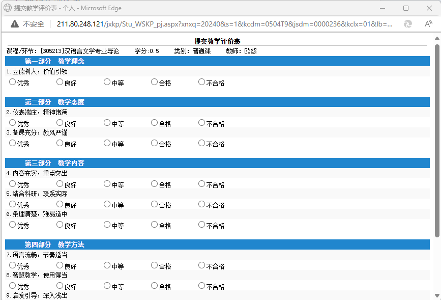 步骤三:点击“提交教学评价表”,加载相应页面;