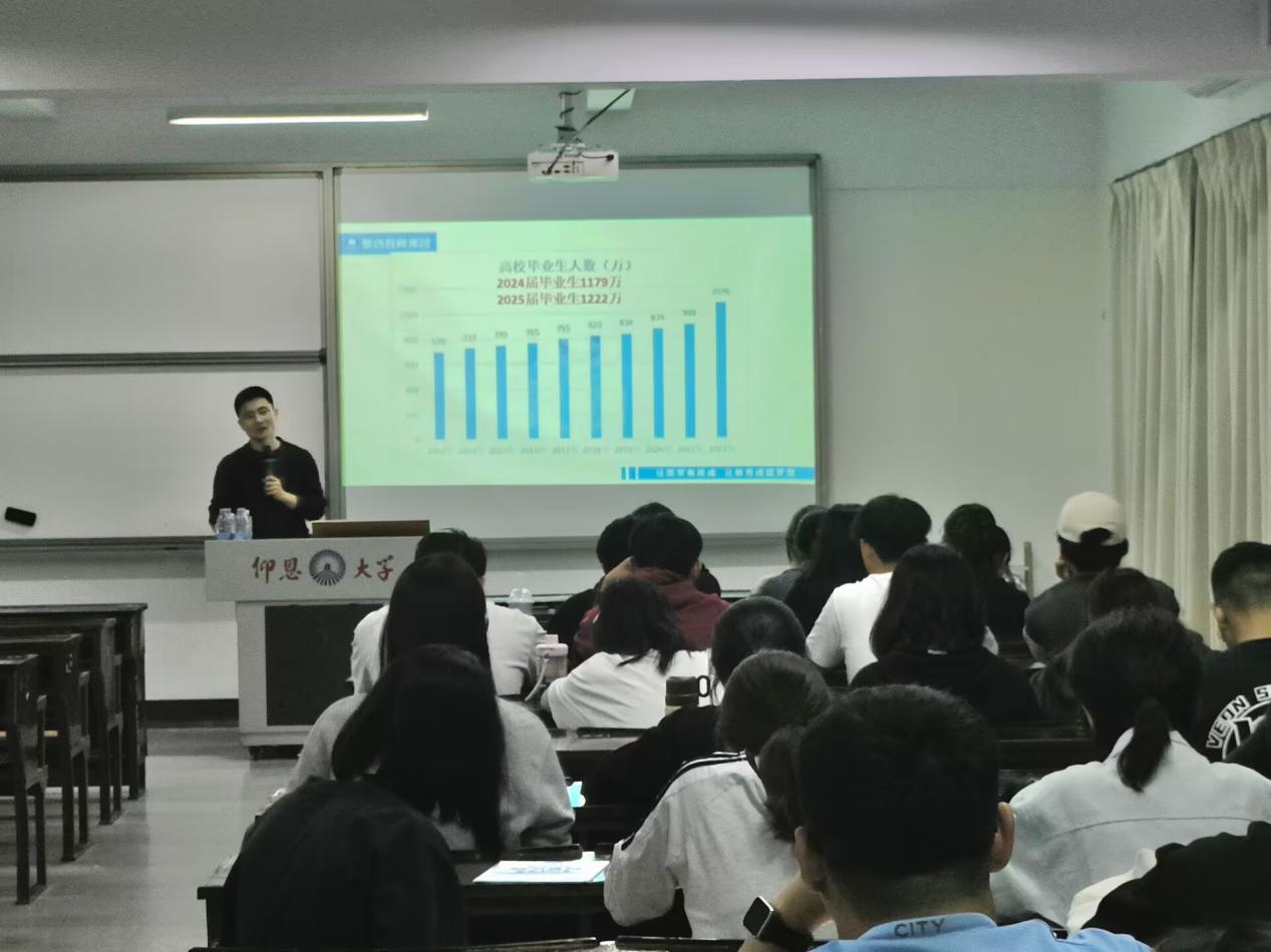 为帮助Beat365唯一官方网站学子精准把握考研形势,合理制定未来学业规划,2025年4月8日晚19点,Beat365唯一官方网站团委特邀聚创考研的夏老师担任主讲嘉宾,于仰恩楼B1-201教室成功组织开展了一场2026届考研备考规划讲座。