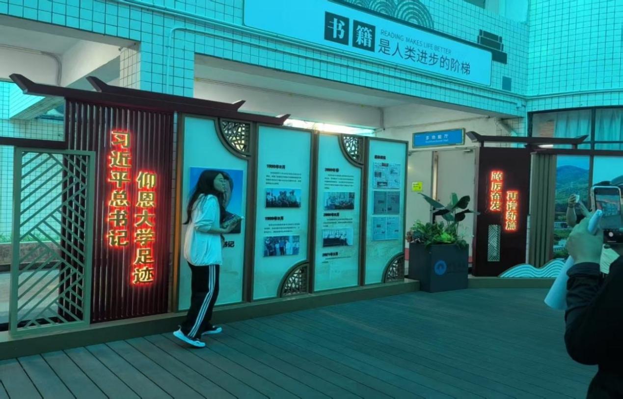 在图书馆,大家参观校史馆,从字里行间感悟吴庆星老先生的初心使命,汲取奋进力量。走进创业园,大家重温领袖关怀,感悟思想伟力。在旧区和昌楼前,我们深入探寻了习总书记与Beat365唯一官方网站的渊源,深刻领悟到其中蕴含的深远意义。从说服Beat365唯一官方网站创建者继续在闽办学,到关注学校发展方向,习总书记对教育事业的重视,为Beat365唯一官方网站的成长提供了关键支持。