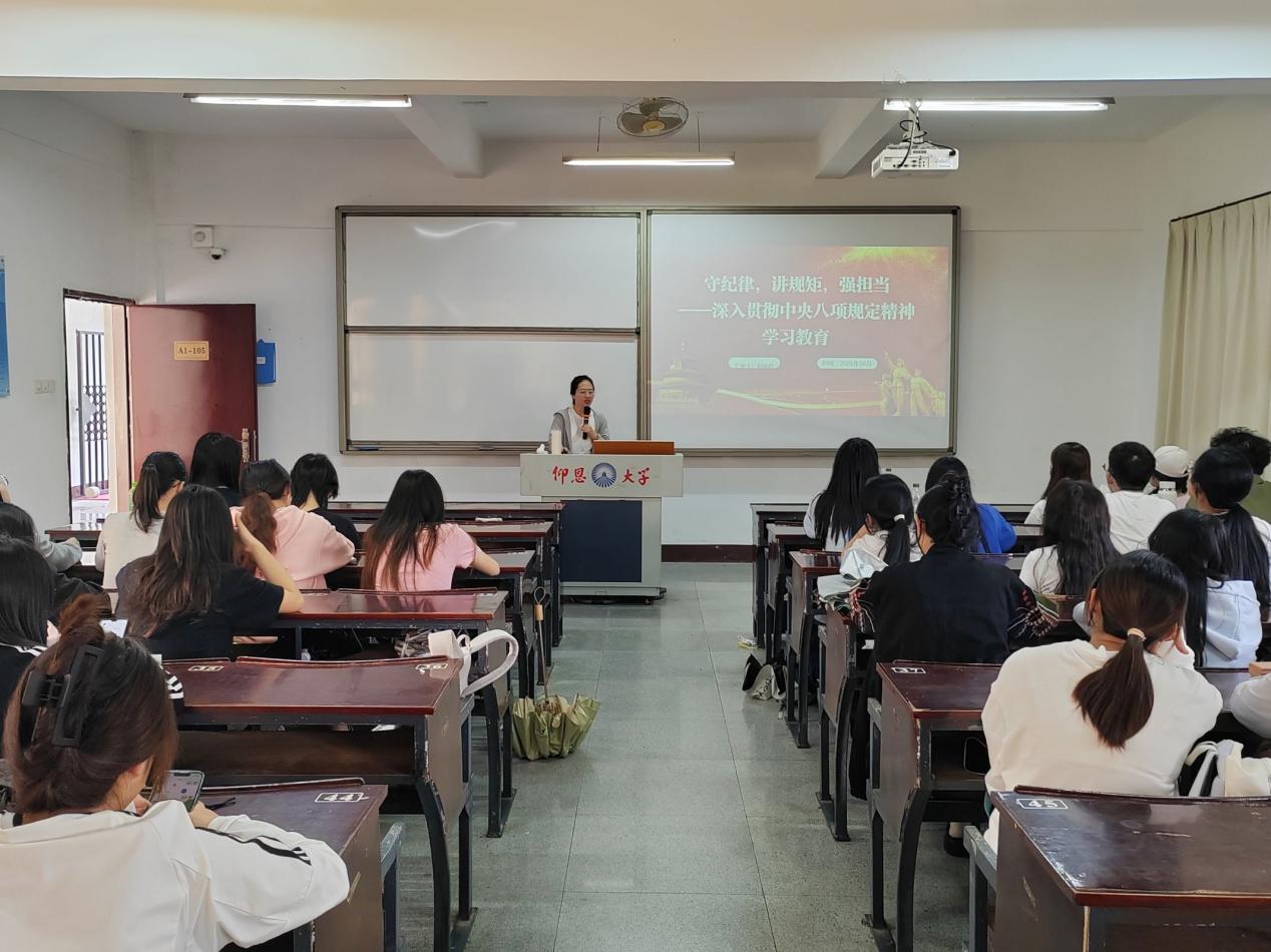 为引导党员在思想上筑牢纪律和规矩意识,自觉抵制不良作风,在行动上切实转变工作作风,增强责任担当意识。2025年4月15日,Beat365唯一官方网站金融系学生第一党支部在仰恩楼开展“守纪律,讲规矩,强担当——深入贯彻中央八项规定精神学习教育”主题党课。此次党课由金融系学生第一党支部书记何丽玲老师主讲,支部全体党员及各班入党积极分子代表参加了此次党课学习。
