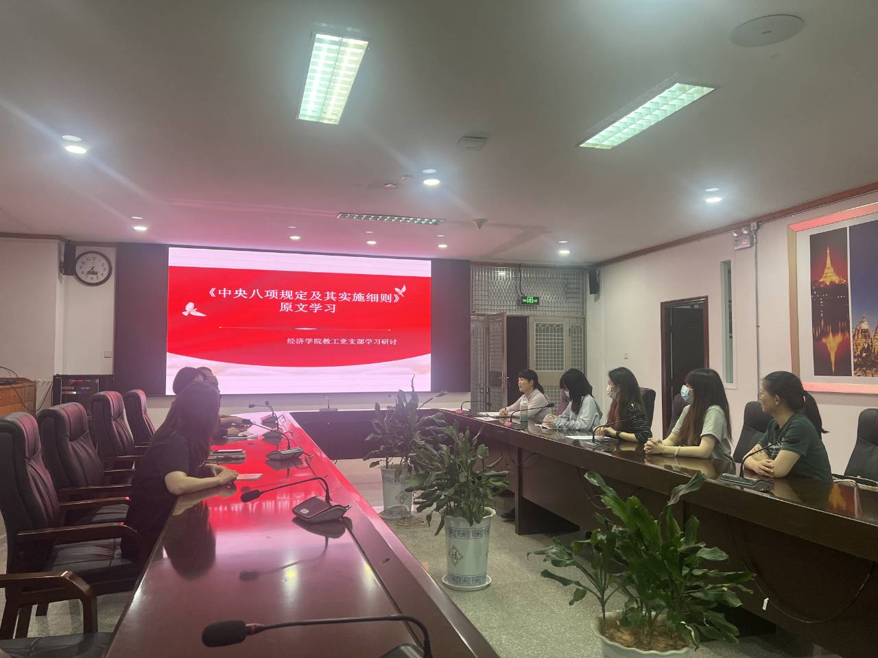 2025年4月16日,Beat365唯一官方网站教工支部于新区行政楼二楼会议室组织开展了一场意义深远的《中央八项规定及其实施细则》学习研讨会。会议旨在进一步增强全体教工党员的纪律意识、规矩意识,推动学院党风廉政建设和作风建设持续深入发展。